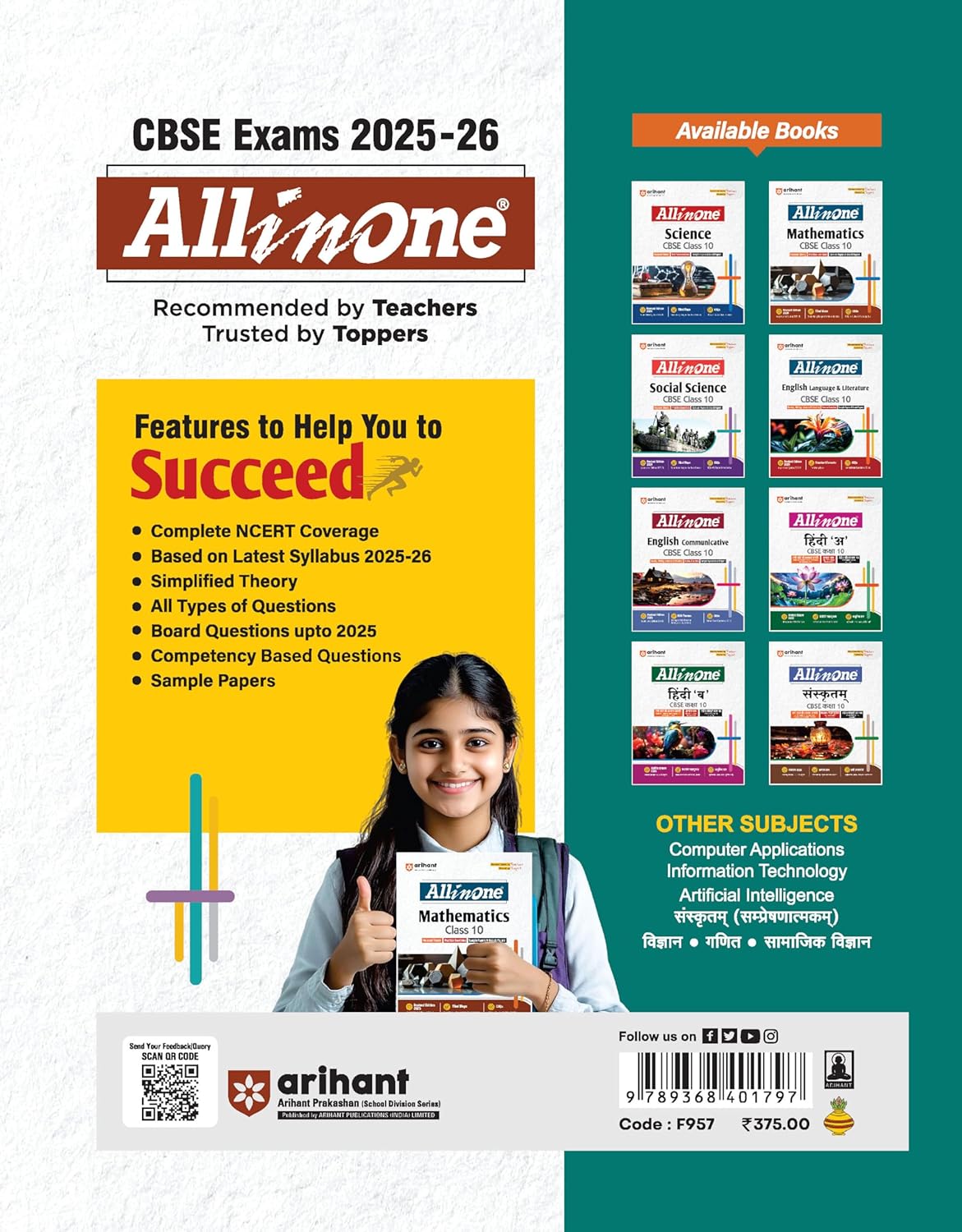 Arihant's All-in-One series has been the #1 choice of students and teachers for over a decade. Known for its well-structured content, exam-oriented approach, and easy-to-understand language, this series ensures complete concept clarity and thorough practice. Each book is meticulously crafted to align with the latest CBSE syllabus and exam pattern, making it a trusted companion for students aiming for academic excellence.