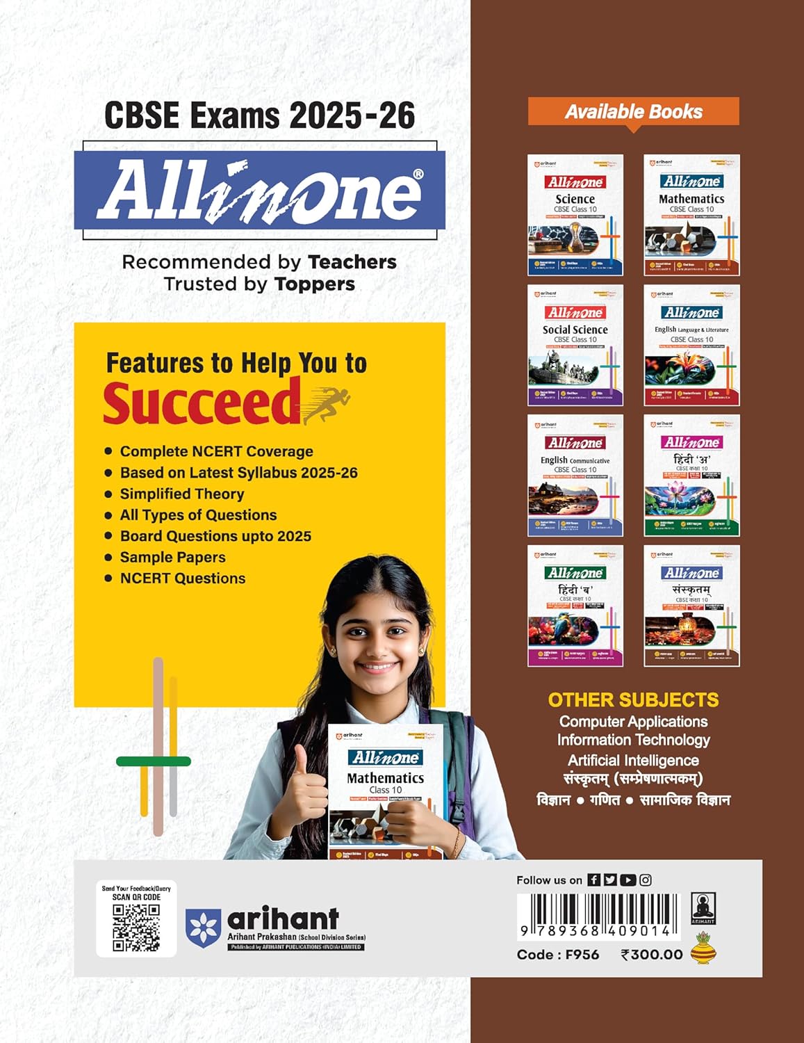 Arihant's All-in-One series has been the #1 choice of students and teachers for over a decade. Known for its well-structured content, exam-oriented approach, and easy-to-understand language, this series ensures complete concept clarity and thorough practice. Each book is meticulously crafted to align with the latest CBSE syllabus and exam pattern, making it a trusted companion for students aiming for academic excellence.