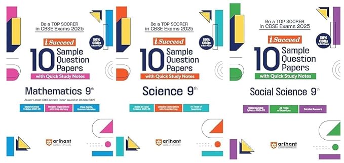 Arihant 2025 Isucceed 10 Sample Question Papers for Class 9th (Mathematics & Science & Social Science) Combo Set OF 3 Books
