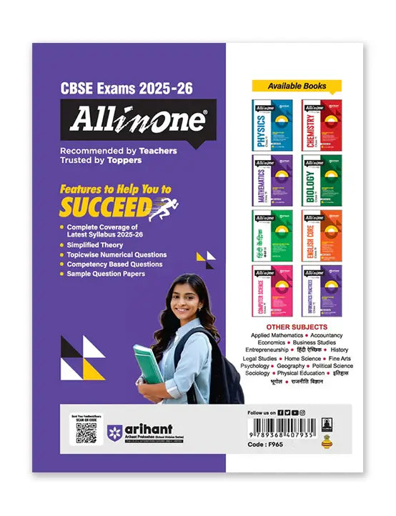 Arihant's All-in-One series has been the #1 choice of students and teachers for over a decade. Known for its well-structured content, exam-oriented approach, and easy-to-understand language, this series ensures complete concept clarity and thorough practice. Each book is meticulously crafted to align with the latest CBSE syllabus and exam pattern, making it a trusted companion for students aiming for academic excellence.