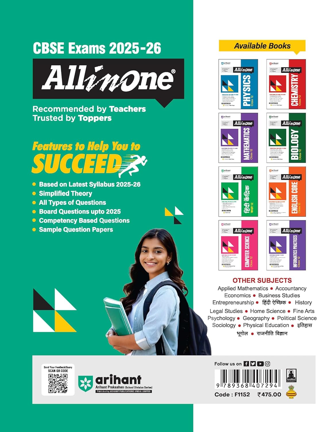 Arihant's All-in-One series has been the #1 choice of students and teachers for over a decade. Known for its well-structured content, exam-oriented approach, and easy-to-understand language, this series ensures complete concept clarity and thorough practice. Each book is meticulously crafted to align with the latest CBSE syllabus and exam pattern, making it a trusted companion for students aiming for academic excellence.