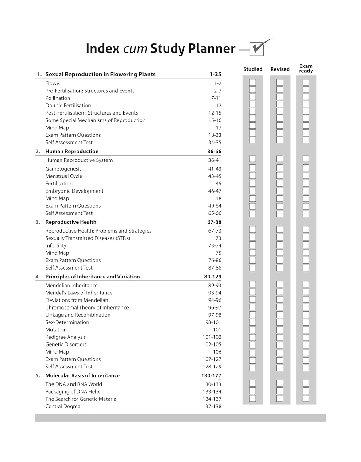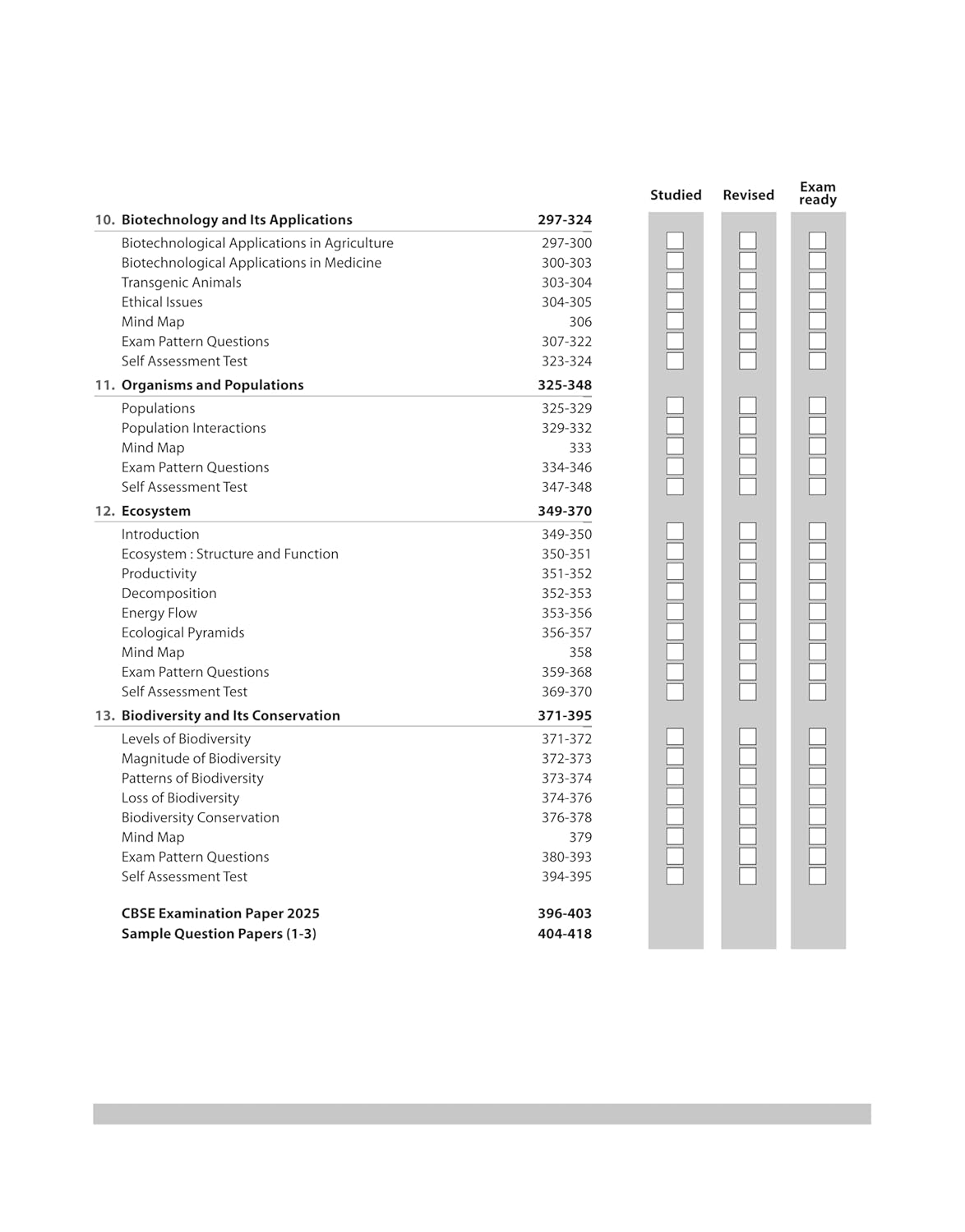 Sexual Reproduction in Flowering Plants, Human Reproduction, Reproductive Health, Principles of Inheritance and Variation, Molecular Basis of Inheritance, Evolution, Human Health and Diseases, Microbes in Human Welfare, Biotechnology: Principles and Processes, Biotechnology and Its Applications, Organisms and Populations, Ecosystem, Biodiversity and Its Conservation, CBSE Examination Paper 2025, Sample Question Papers (1-3)