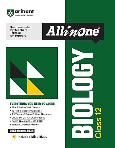 Arihant All in One Biology Class 12 for CBSE Exams 2025-26 | Simplified Theory, In Text & Chapter Exercises, All Types of Exam Pattern Questions, CBQs, MCQs, A-R, Case Based, Sample Question Papers, Board Questions Upto 2025, Mind Maps