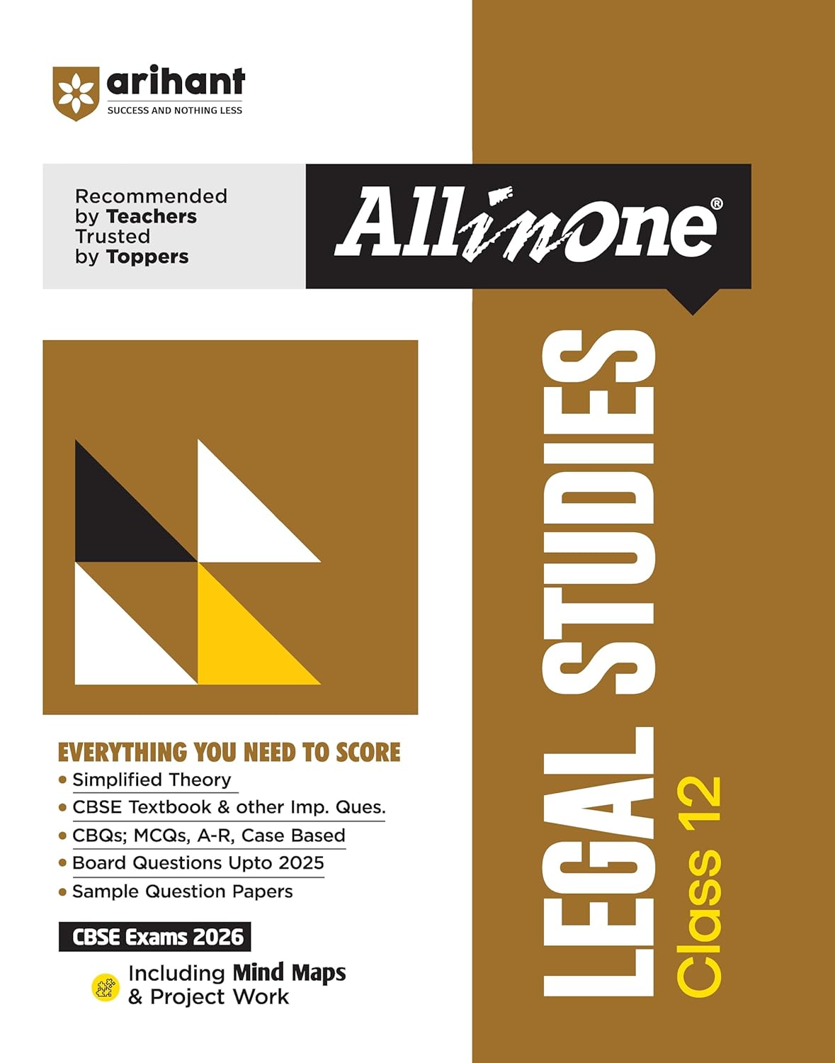 Arihant All in One Legal Studies Class 12 for CBSE Exams 2025-26 | Simplified Theory, CBSE Textbook & other Important Questions, All Types of Exam Pattern Questions, CBQs, MCQs, A-R, Case Based, Sample Question Papers, Mind Maps, Project Work