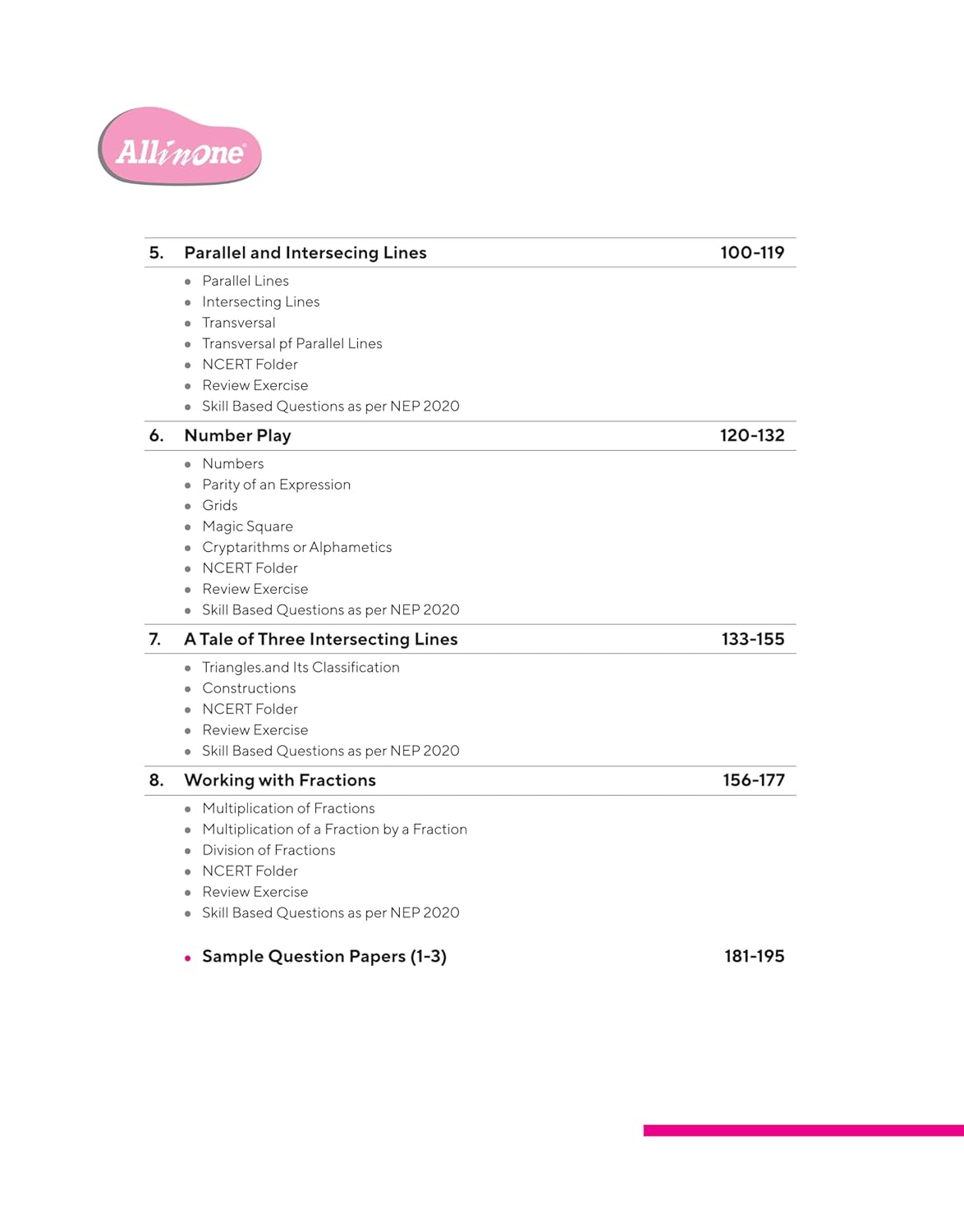 All-in-One Mathematics Class 7 is a comprehensive study guide designed strictly according to the latest NCERT syllabus and exam guidelines. With structured chapter flow, rich theory content, and a range of practice questions, this book ensures conceptual clarity and exam readiness. Built with NEP 2020 in mind, it encourages skill-based learning and independent practice.