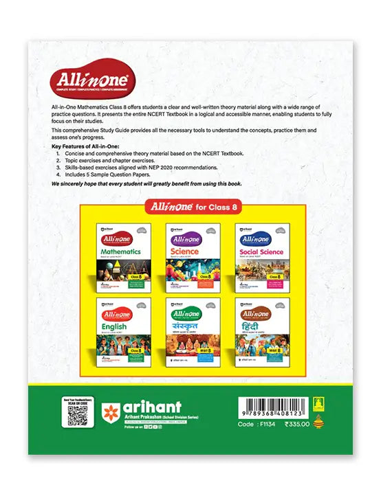 Unlock the world of Mathematics with Arihant’s "All in One Class 8 Mathematics," meticulously designed to give young minds a comprehensive and structured learning experience. This study guide is based on the latest NCERT curriculum, covering the key themes in NCERT.