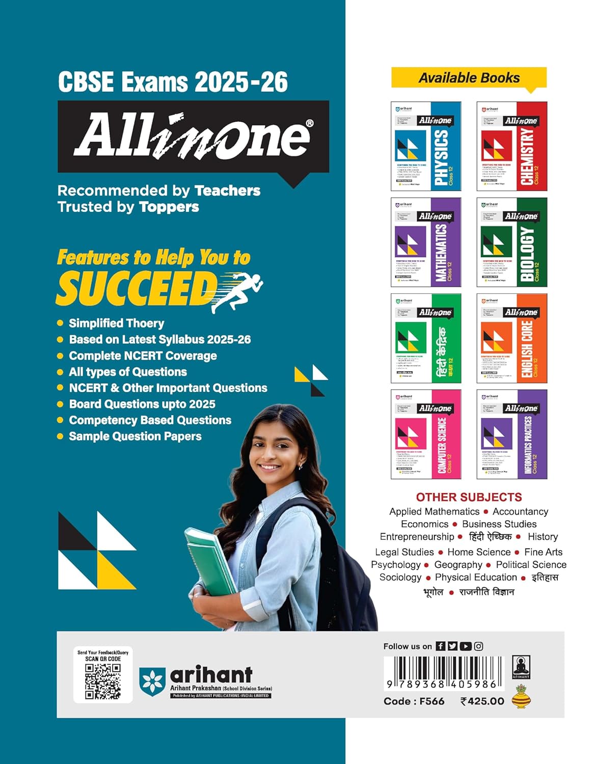 Arihant's All-in-One series has been the #1 choice of students and teachers for over a decade. Known for its well-structured content, exam-oriented approach, and easy-to-understand language, this series ensures complete concept clarity and thorough practice. Each book is meticulously crafted to align with the latest CBSE syllabus and exam pattern, making it a trusted companion for students aiming for academic excellence.