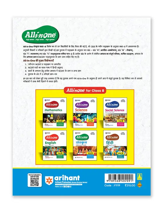 Equip your Class 8 student with all they need to master Sanskrit with Arihant’s "All in One." This book is not just a study guide—it’s a complete toolkit for academic success in Sanskrit.