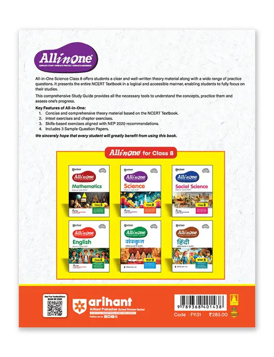 Equip your Class 8 student with all they need to master Science with Arihant’s "All in One." This book is not just a study guide—it’s a complete toolkit for academic success in Science.