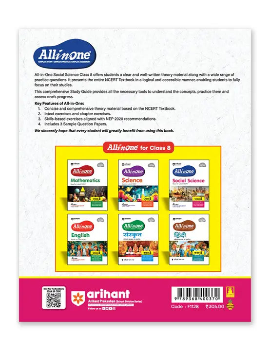 Unlock the world of Social Science with Arihant’s "All in One Class 8 Social Science," meticulously designed to give young minds a comprehensive and structured learning experience. This study guide is based on the latest NCERT curriculum, covering the key themes in NCERT.