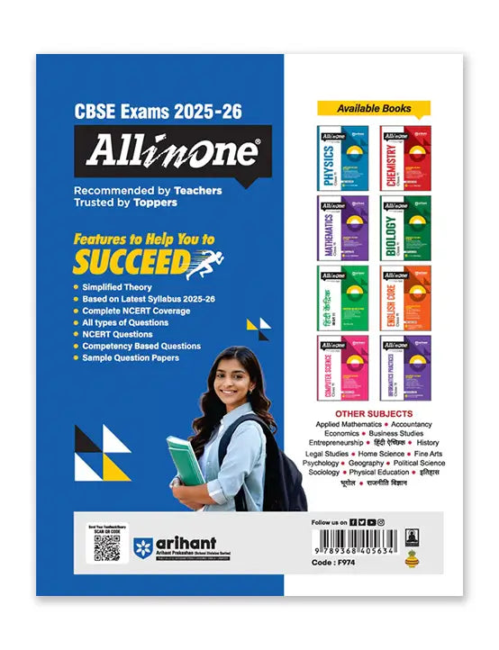 Arihant's All-in-One series has been the #1 choice of students and teachers for over a decade. Known for its well-structured content, exam-oriented approach, and easy-to-understand language, this series ensures complete concept clarity and thorough practice. Each book is meticulously crafted to align with the latest CBSE syllabus and exam pattern, making it a trusted companion for students aiming for academic excellence.