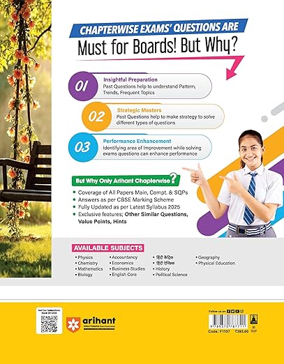 It includes a chapterwise breakdown of past 10 years’ board questions, answers designed as per official CBSE marking scheme, and the latest 2025 sample paper with model solutions — helping you practice like the real exam.
