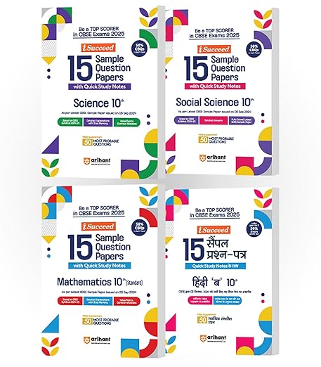 Arihant I-Succeed CBSE Sample Paper Class 10th (2024-2025) Science, Social Science, Maths Standard & Hindi B | Combo Set of 4 Books for Exam 2025