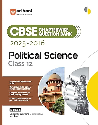 Arihant CBSE Chapterwise Question Bank 2025–2016 for Class 12 Political Science | Latest Syllabus | Includes Solved Papers, Sample Papers, and CBSE Marking Scheme