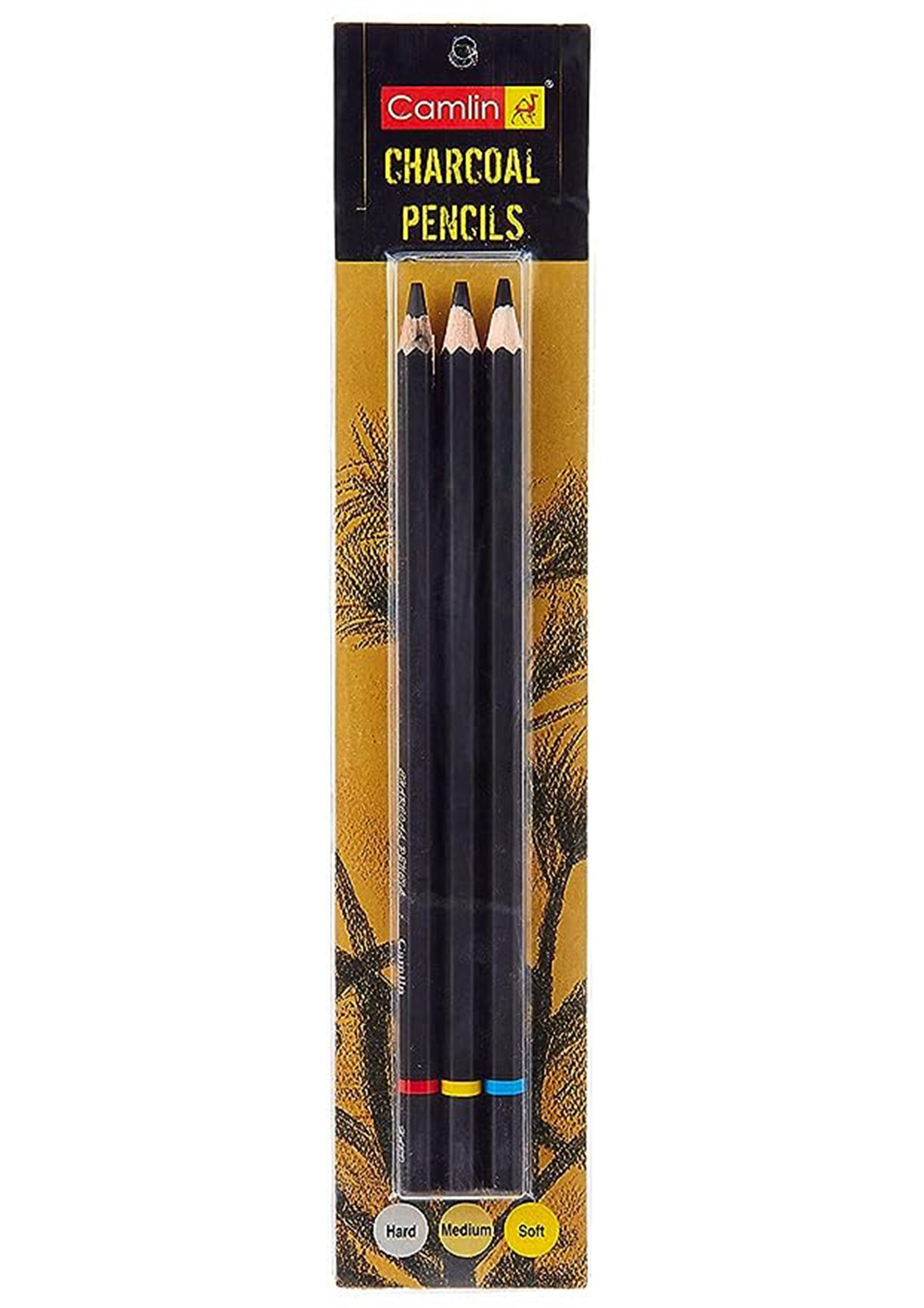 - This pack contains Camlin Charcoal Pencils in three grades Hard, Medium, and soft.