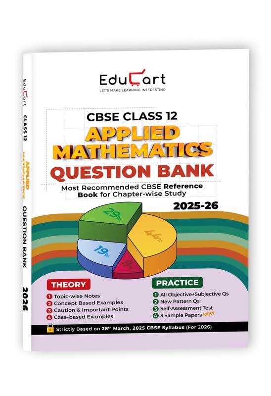 Educart CBSE Class 12 Applied Mathematics Question Bank 2025-26 on new Syllabus 2026 (Includes Past Years Solved Questions)
