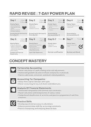 • Rapid Revision with a 7-Day Power Plan with Priority Topics, Time, and Weightage for each chapter.