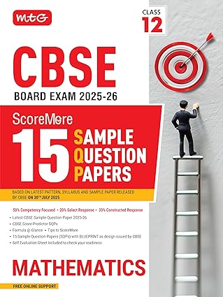 MTG has released the latest & updated CBSE ScoreMore 15 Sample Papers for the CBSE Session 2025-2026 of Class 12. It is the most authentic book and is strictly based on the design of the latest sample paper issued by CBSE on 30th July 2025. Solutions of all SQPs as per the CBSE Marking Scheme. Solved CBSE Official Sample Paper included new features like Important Formulae, CBSE Score Predictor, Tips to Score More, etc.