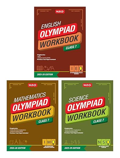 MTG Class-7 NSO-IMO-IEO (Science, Mathematics & English) Olympiad Workbook Combo (Set of 3 Books) | MCQs, & Achievers Section - SOF Olympiad Books For 2025-26 Exam