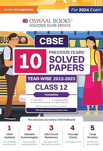 Oswaal CBSE 10 Previous Years Solved Papers, Yearwise (2014-2024 Humanities (History, Political Science, Geography, English Core) Class 12 Book (For 2025 Exam)