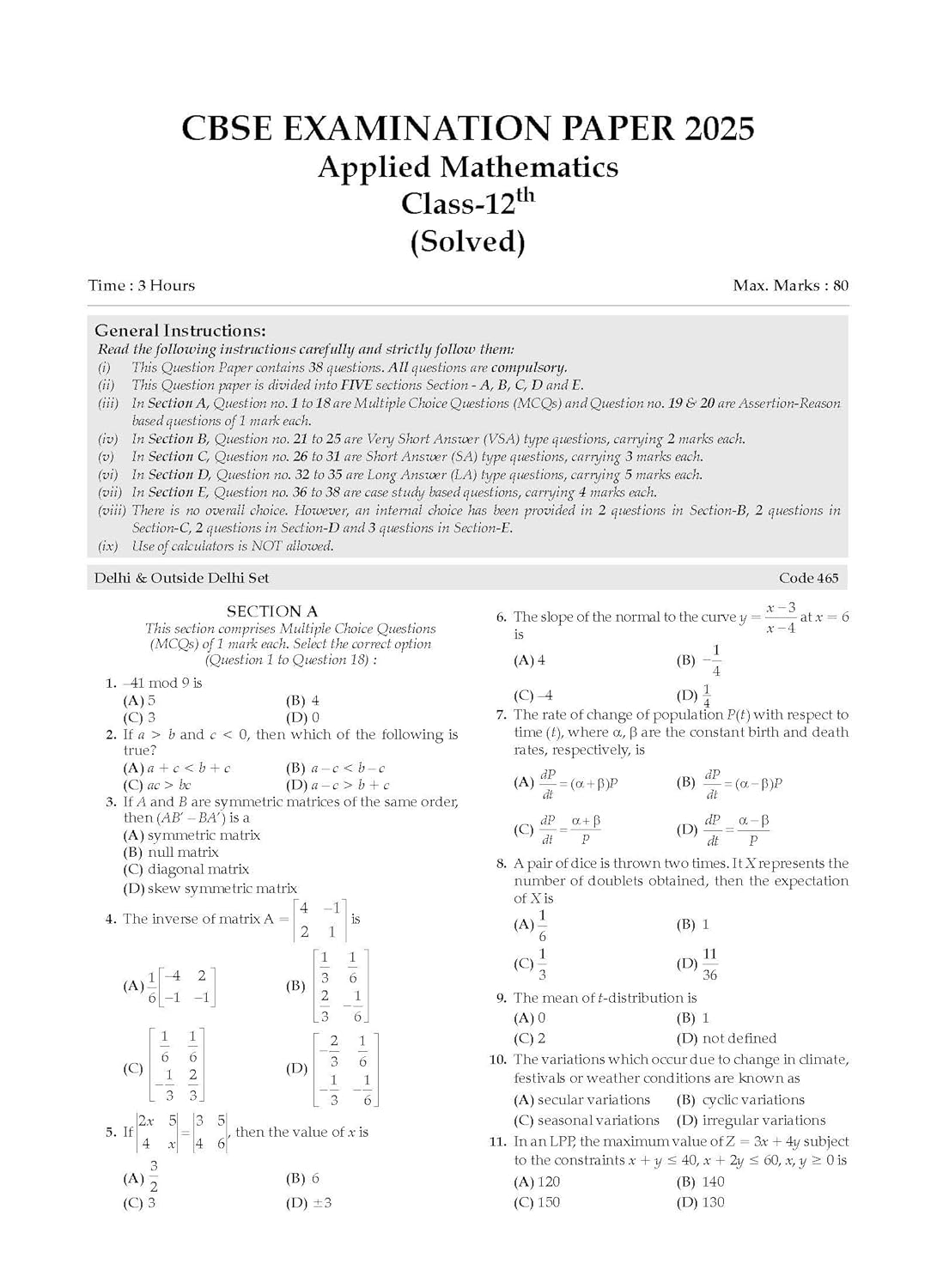 Oswaal CBSE Question Bank Chapterwise and Topicwise SOLVED PAPERS Class 12 Applied Mathematics For Exam 2026