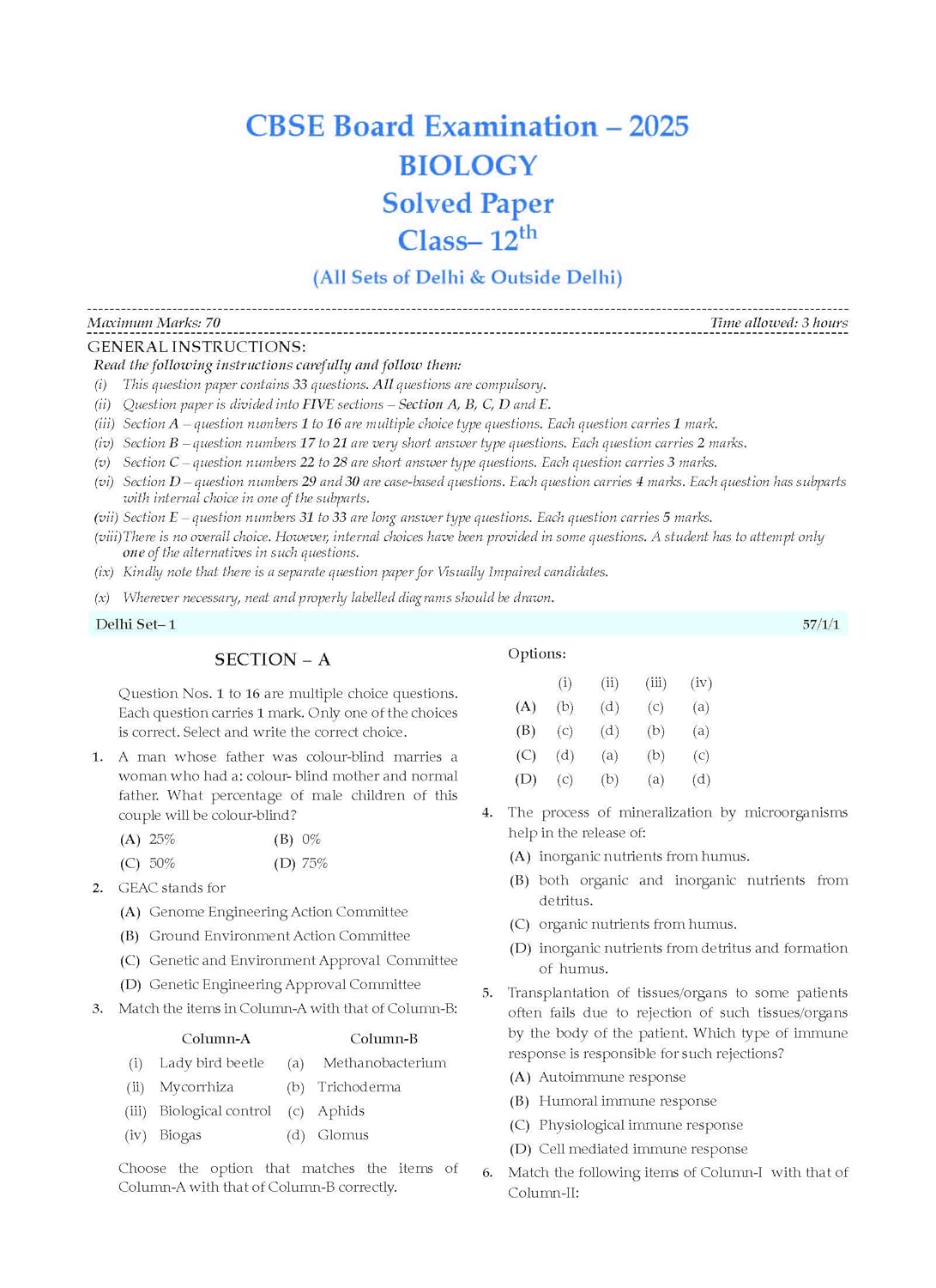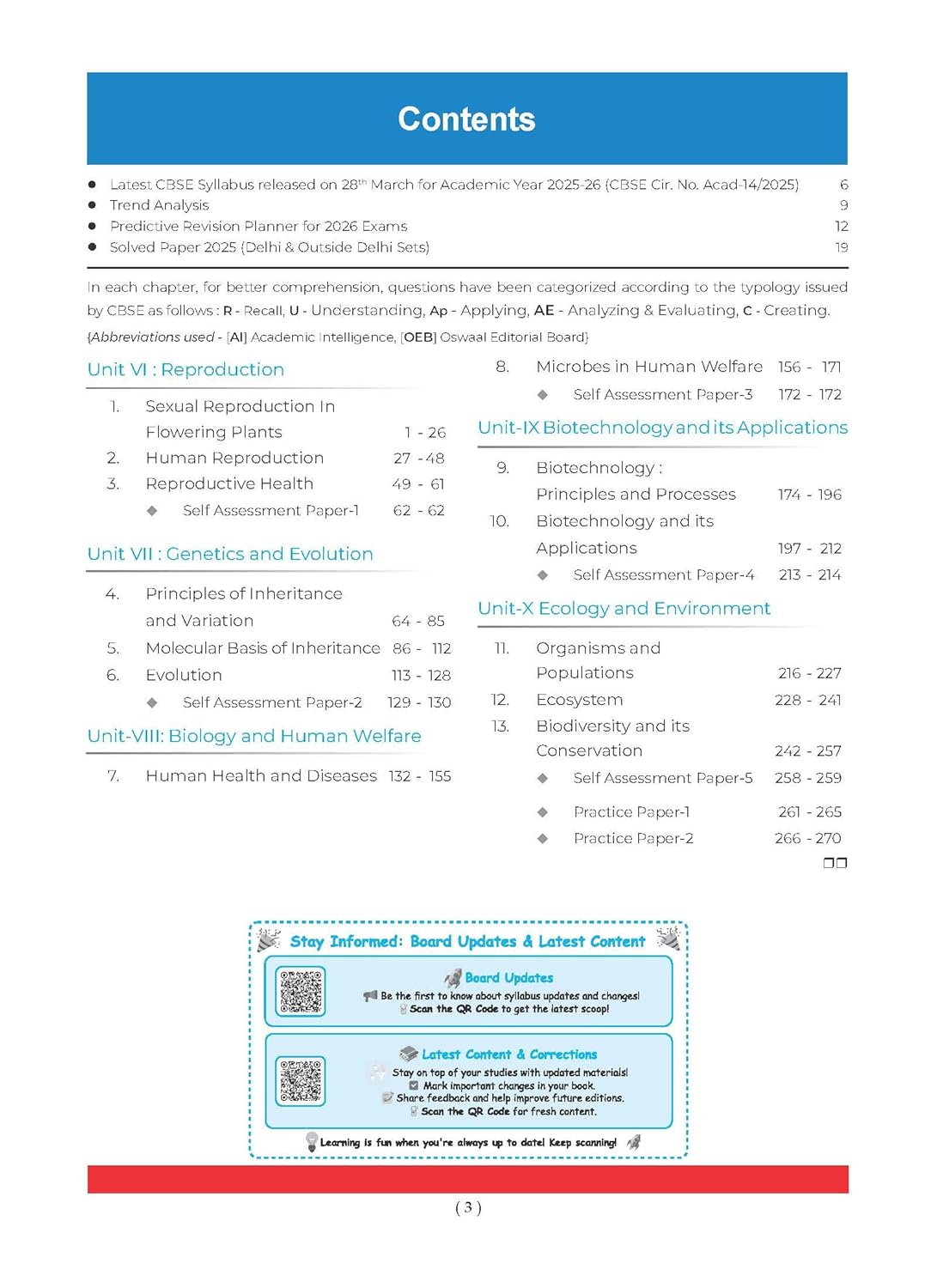 Oswaal CBSE Question Bank Chapterwise and Topicwise SOLVED PAPERS Class 12 Biology For Exam 2026