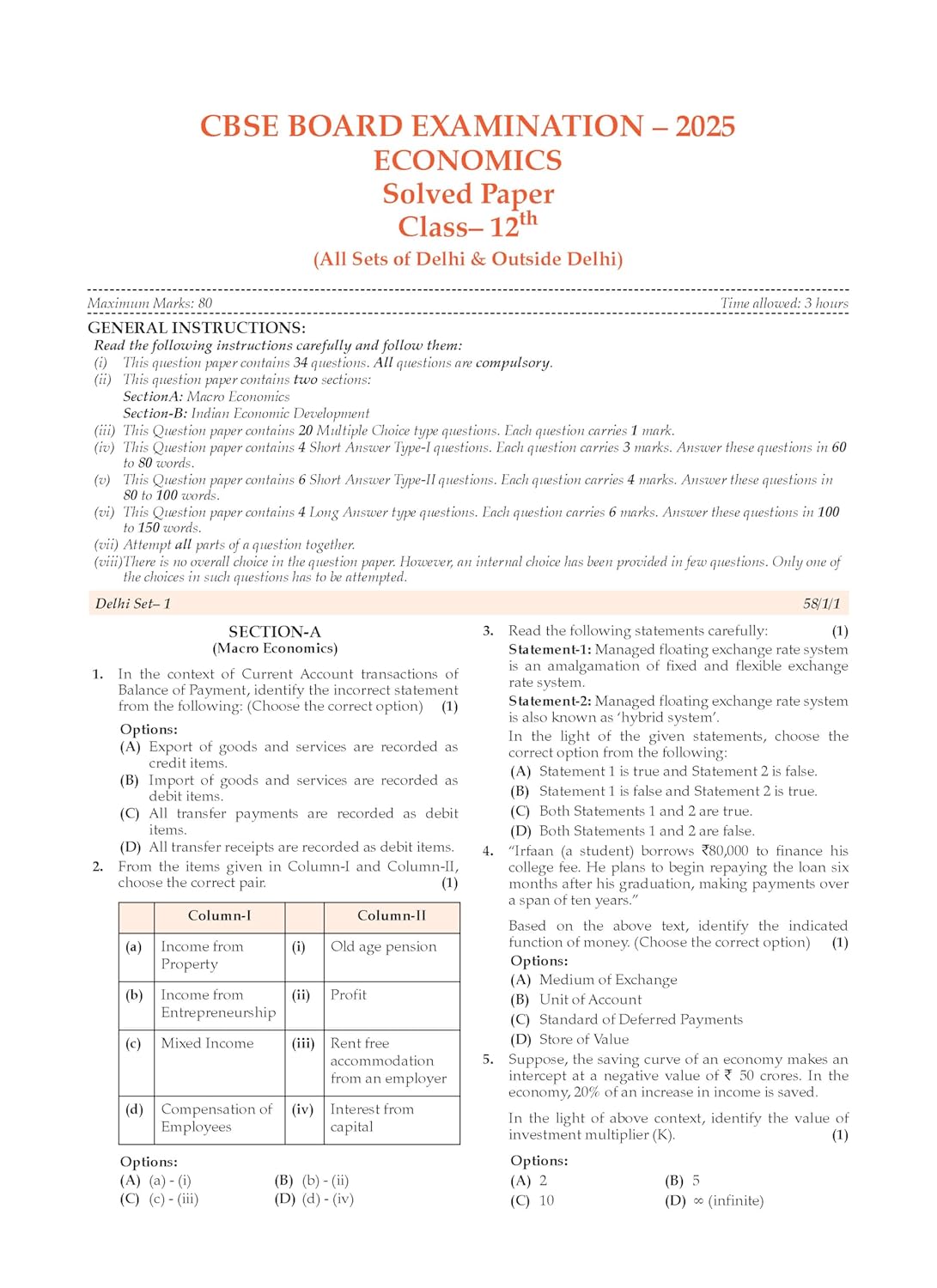 Oswaal CBSE Question Bank Chapterwise and Topicwise SOLVED PAPERS Class 12 Economics For Exam 2026