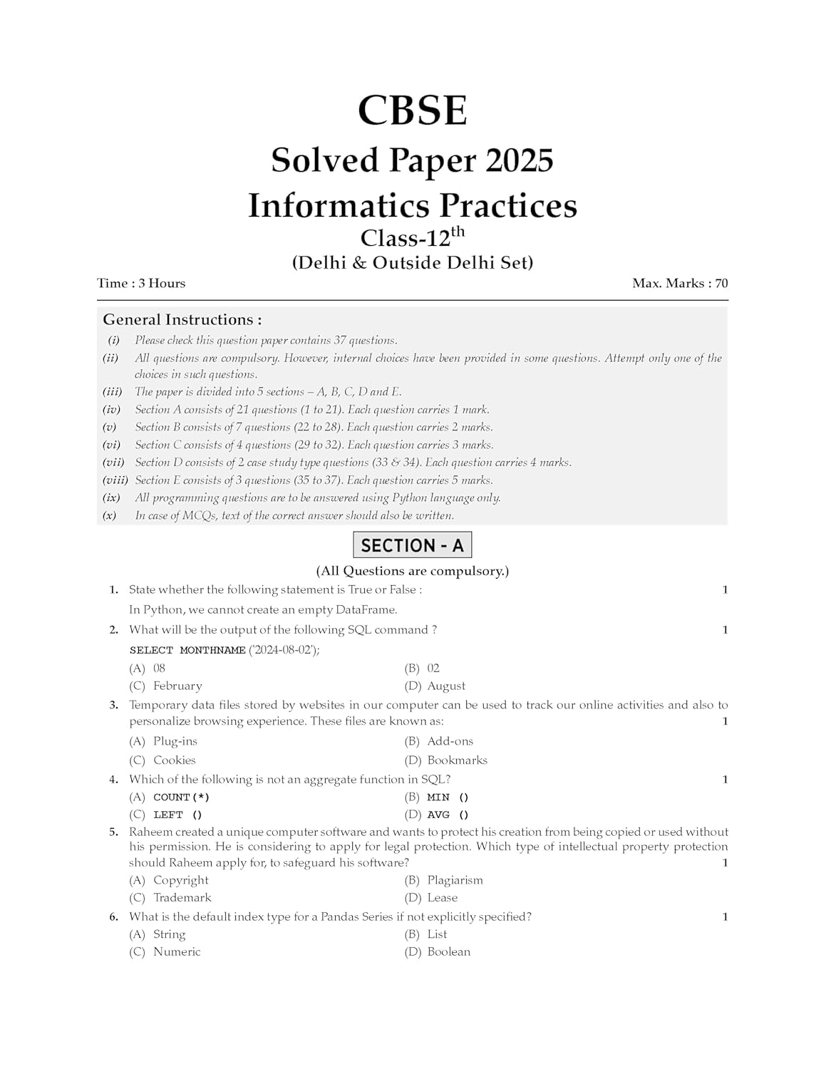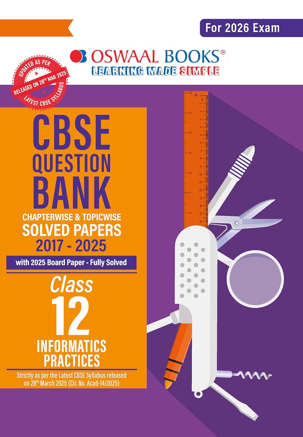 Oswaal CBSE Question Bank Chapterwise and Topicwise SOLVED PAPERS Class 12 Informatics Practices For Exam 2026