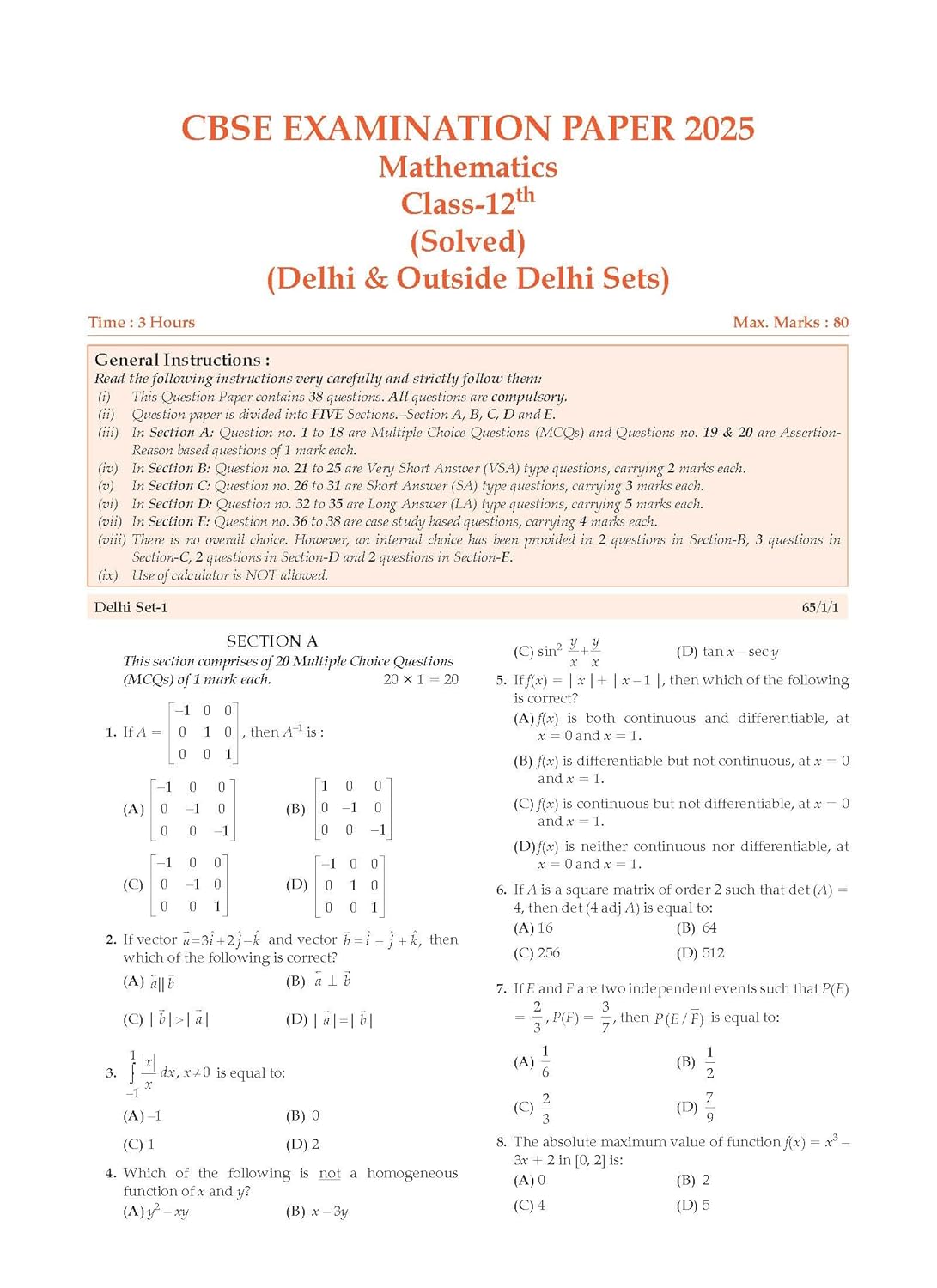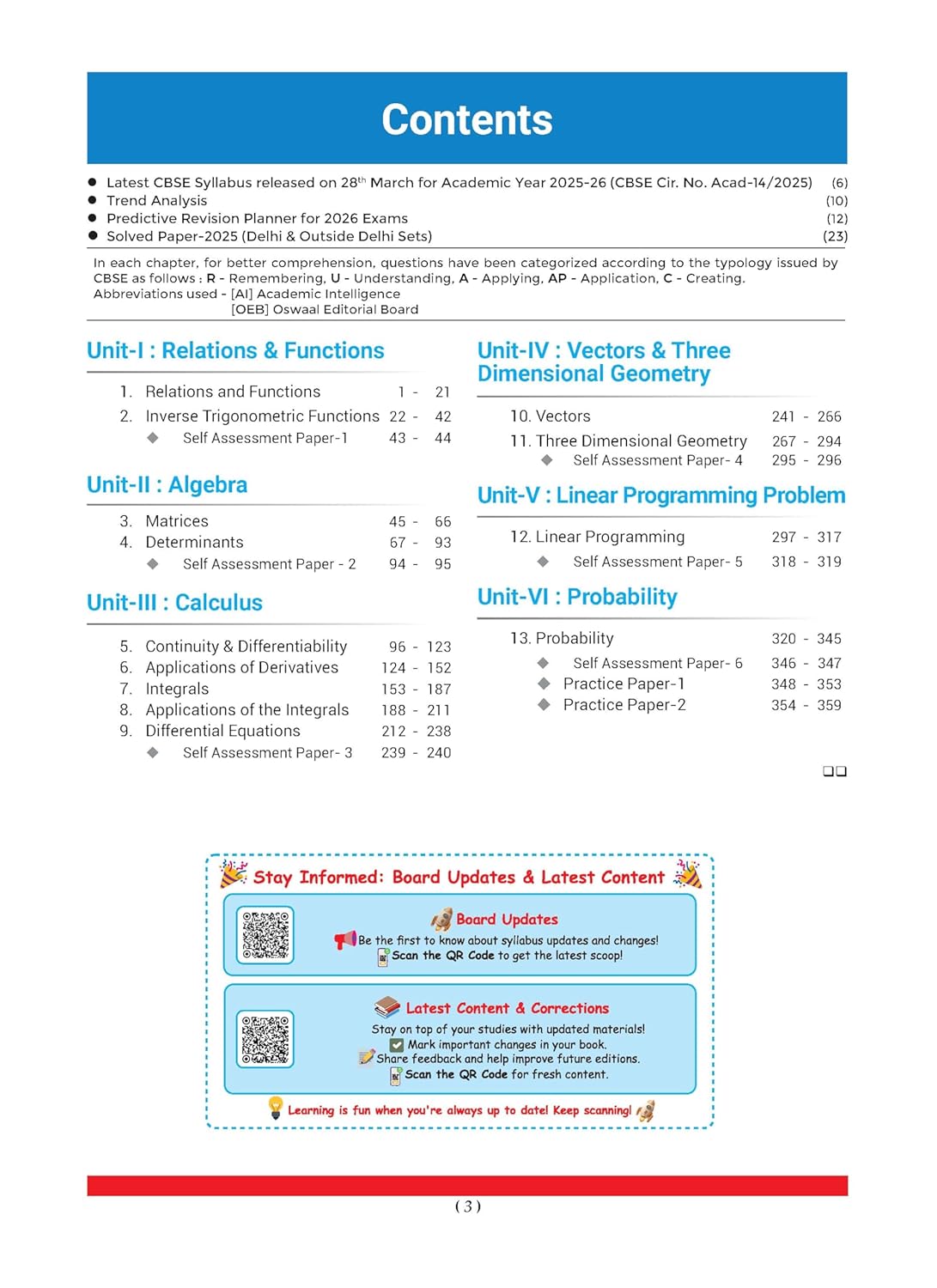 Oswaal CBSE Question Bank Chapterwise and Topicwise SOLVED PAPERS Class 12 Mathematics For Exam 2026
