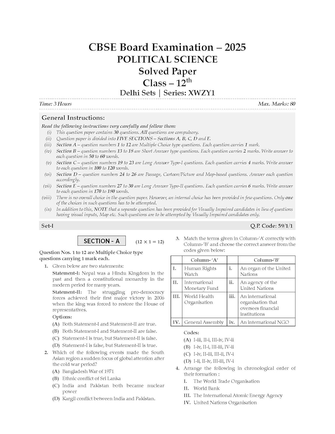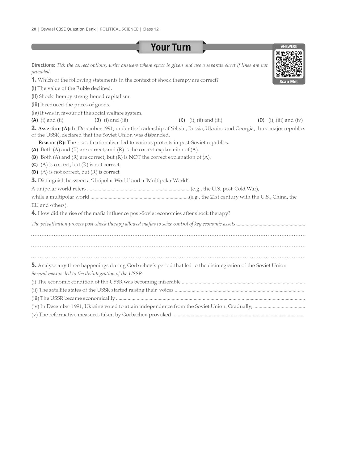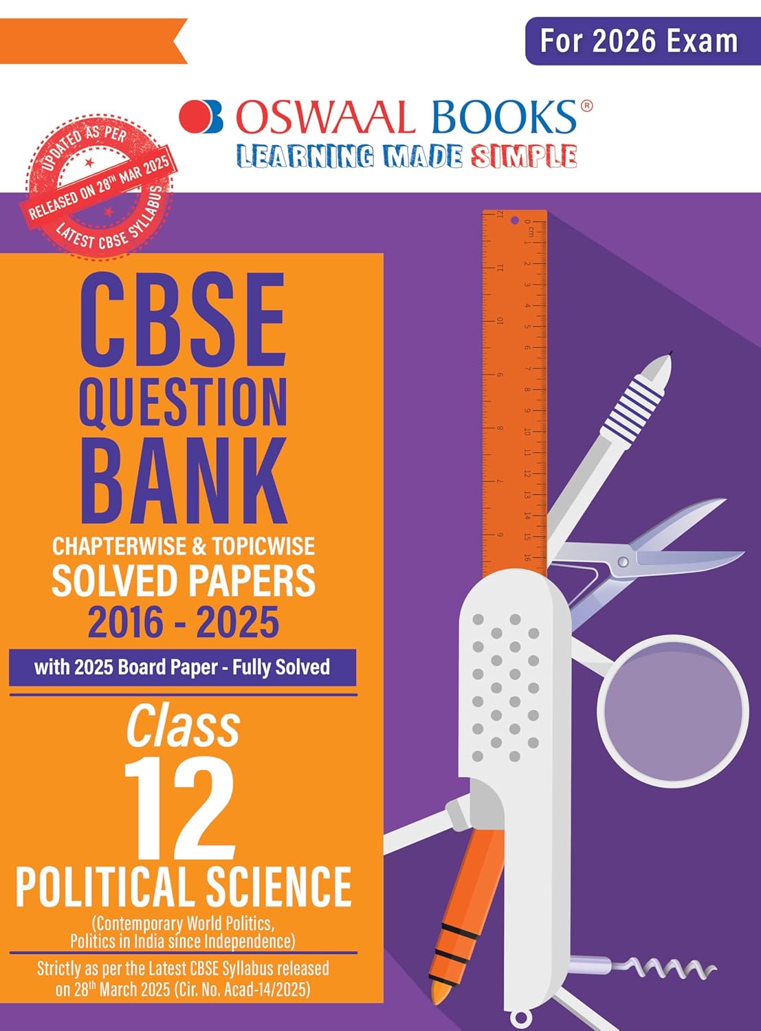 Oswaal CBSE Question Bank Chapterwise and Topicwise SOLVED PAPERS Class 12 Political Science For Exam 2026