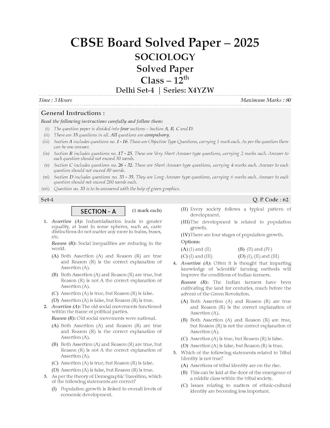 Oswaal CBSE Question Bank Chapterwise and Topicwise SOLVED PAPERS Class 12 Sociology For Exam 2026