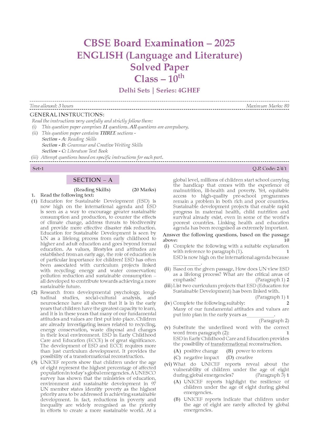 Oswaal CBSE Question Bank Chapterwise and Topicwise SOLVED PAPERS Class 10 ENGLISH LANGUAGE & LITERATURE For Exam 2026