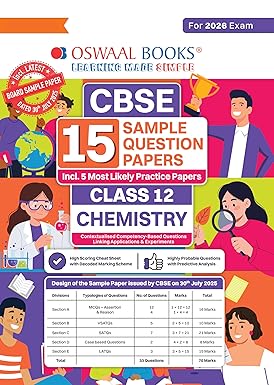 The Oswaal CBSE 15 Sample Question Papers Class 12 Chemistry (2026 Exam) is a trusted exam resource based on the official CBSE Sample Question Paper released on 30 July 2025. Specially designed for Class 12 students, this book provides exam-level practice papers strictly following the latest CBSE guidelines and rationalised syllabus.