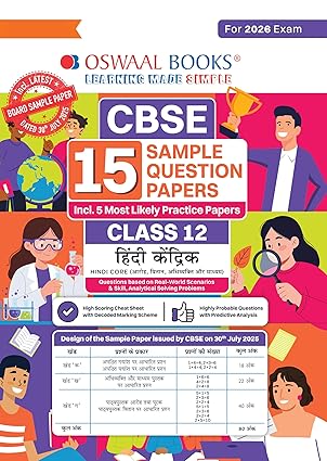 Prepare thoroughly for the CBSE Class 12 Hindi Kendrik Board Exam 2026 with Oswaal 15 Sample Question Papers, updated as per the official CBSE Sample Paper released on 30 July 2025. This book is designed to help students master literature, grammar, comprehension, and writing skills with complete practice material.