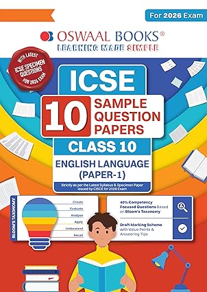Oswaal ICSE 10 Sample Question Papers Class 10 English Paper-1 (Language) for Board Exam 2026 (Strictly aligned with CISCE Latest Specimen Paper 2026), Mind Maps, On-Tips Notes, Solved MCQs, Revision with Explanations & Board Marking Scheme (Copy) (Copy)
