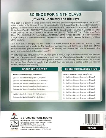 This book is a part of a series of six books written to provide complete coverage of the NCERT science syllabus for Classes 9 and 10 prescribed by the Central Board of Secondary Education (CBSE). The six books in this series are: Science for Ninth Class (Part-1) : PHYSICS, Science for Ninth Class (Part-2) : CHEMISTRY, Science for Ninth Class (Part-3) : BIOLOGY; Science for Tenth Class (Part-1) : PHYSICS, Science for Tenth Class (Part-2) : CHEMISTRY, and Science for Tenth Class (Part-3) : BIOLOGY. The most important feature of the revised editions of these books is that a large variety of solved and unsolved questions has been included to assess the learning abilities of the students.
