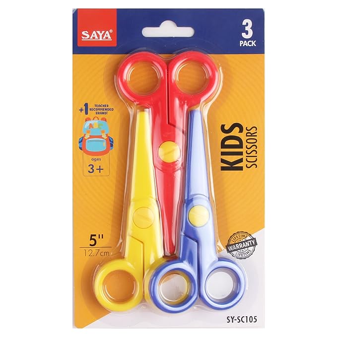 SAYA Kids Craft Scissors Combo Set – 5.5 Inch Safety Scissors with Plastic Blades, Lightweight Handles, Shock Resistant Design – 2 Packs (Total 6 Scissors) Perfect for Arts & Crafts, DIY Projects.