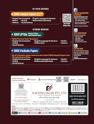 Physical + Digital CBSE Sample Paper 2026 for Class 10 by Rachna Sagar is your practice companion for 2026 board exam preparation. The Sample Question Papers 2025-26 coincides with the latest syllabus, exam pattern and marking scheme. The book strengthens the conceptual foundations by practicing Competency based questions as per different levels of difficulty to ensure excellent results in annual board exams.