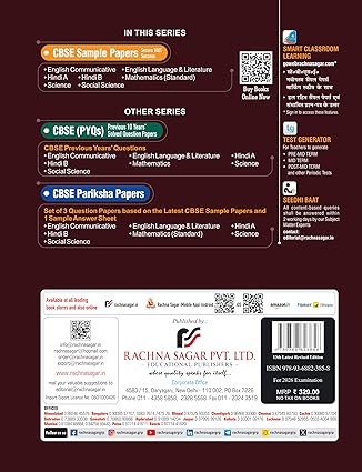 Physical + Digital CBSE Sample Paper 2026 for Class 10 by Rachna Sagar is your practice companion for 2026 board exam preparation. The Sample Question Papers 2025-26 coincides with the latest syllabus, exam pattern and marking scheme. The book strengthens the conceptual foundations by practicing Competency based questions as per different levels of difficulty to ensure excellent results in annual board exams.