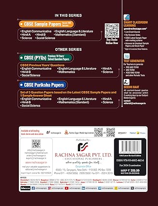Physical + Digital CBSE Sample Paper 2026 for Class 10 by Rachna Sagar is your practice companion for 2026 board exam preparation. The Sample Question Papers 2025-26 coincides with the latest syllabus, exam pattern and marking scheme. The book strengthens the conceptual foundations by practicing Competency based questions as per different levels of difficulty to ensure excellent results in annual board exams.
