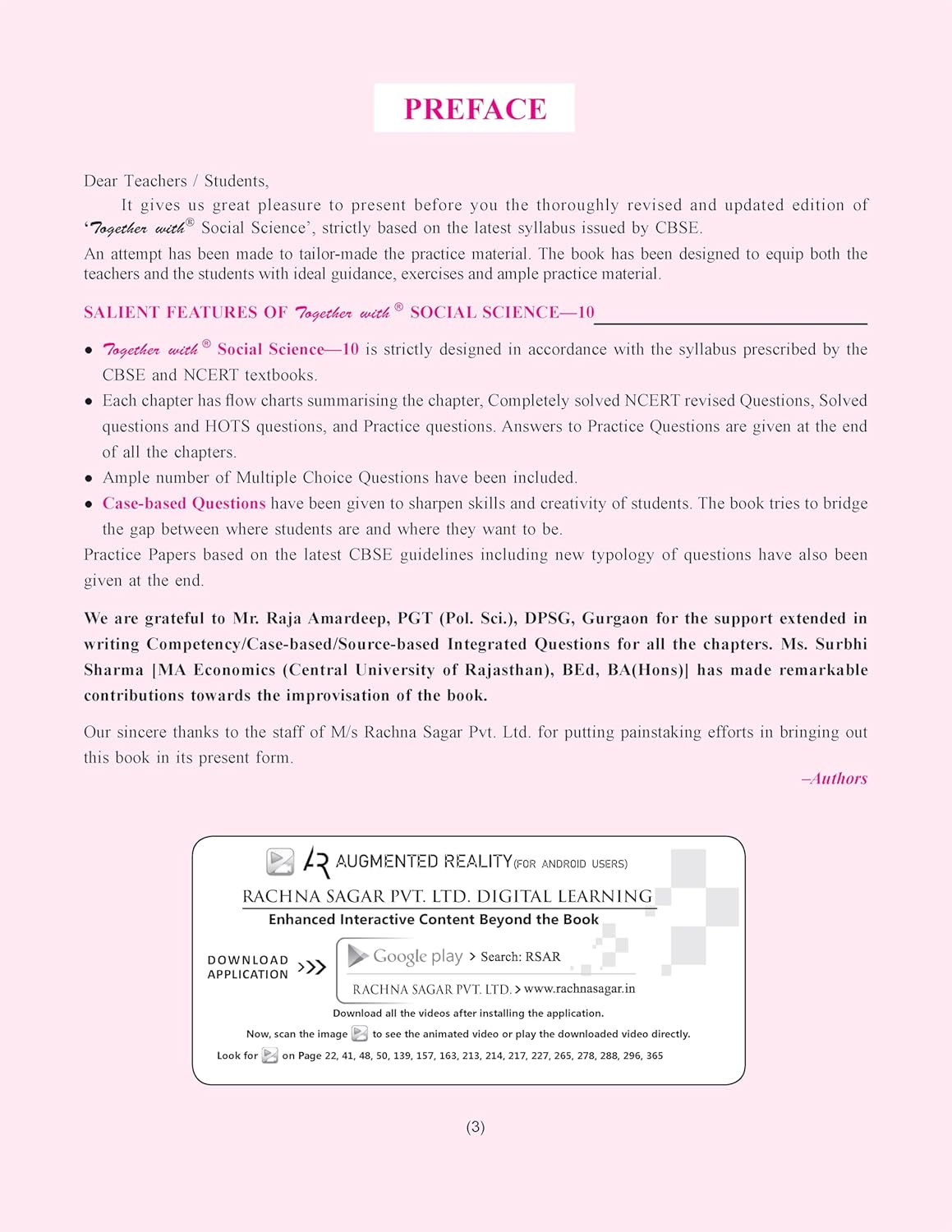 Together with’ CBSE Class 10 Social Science Question Bank has been released by Rachna Sagar for Session 2025-26.Chapter-wise/Topic-wise Question Bank provides in-depth knowledge of all types of questions to prepare for the CBSE Class 10 Social Science Board Exam 2025. The Best Reference Material highlights the Knowledge & Skill-based questions as per the CBSE Curriculum to prepare for the subject in-depth.