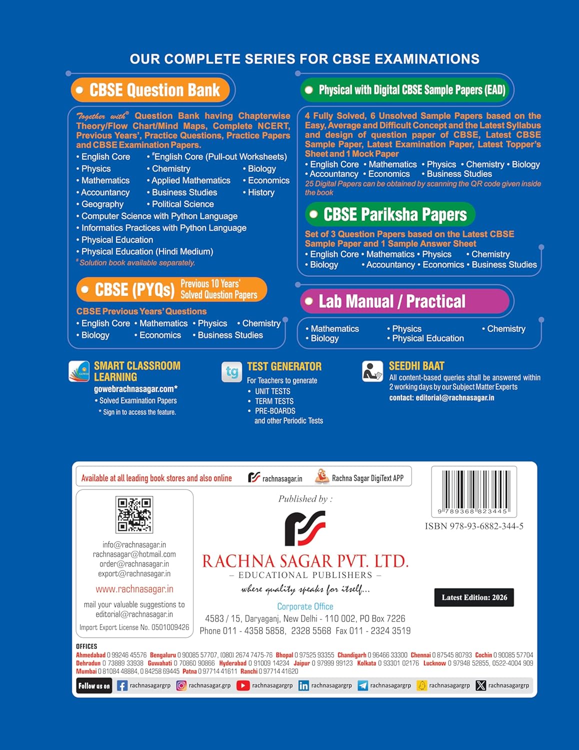 Together with the CBSE Question Bank for Class 12, this is an ultimate practice companion for the 2026 board exam preparation. Chapter-wise study material crafted by experts, perfectly aligned with the latest syllabus, marking scheme & exam pattern to strengthen conceptual foundations with simplified theory, clear diagrams, and CBSE-pattern questions.