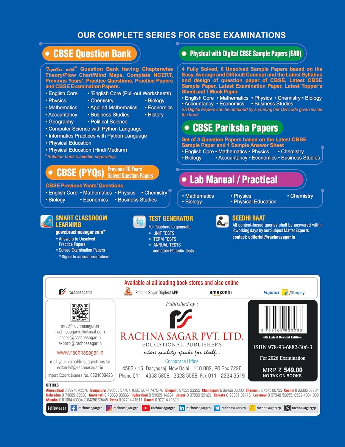 Together with the CBSE Question Bank for Class 12, this is an ultimate practice companion for the 2026 board exam preparation. Chapter-wise study material crafted by experts, perfectly aligned with the latest syllabus, marking scheme & exam pattern to strengthen conceptual foundations with simplified theory, clear diagrams, and CBSE-pattern questions.