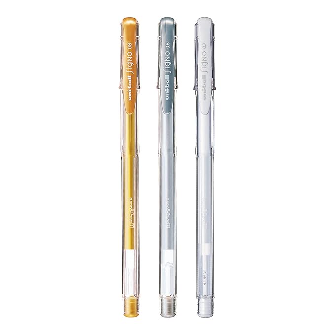 uni-ball Signo UM-100 0.7mm - 0.8mm Gel Pen | Gold, Silver, Cream Ink, Pack of 3