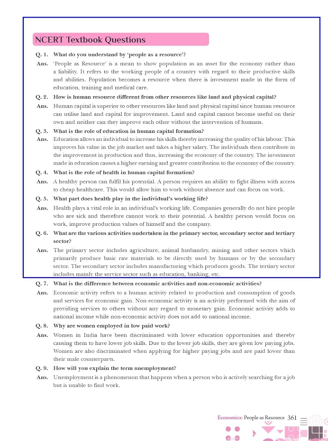 ● Different typologies of questions in the form of Multiple-Choice Questions, Very Short Answers, Short Answers, and Long Answer Questions are given.